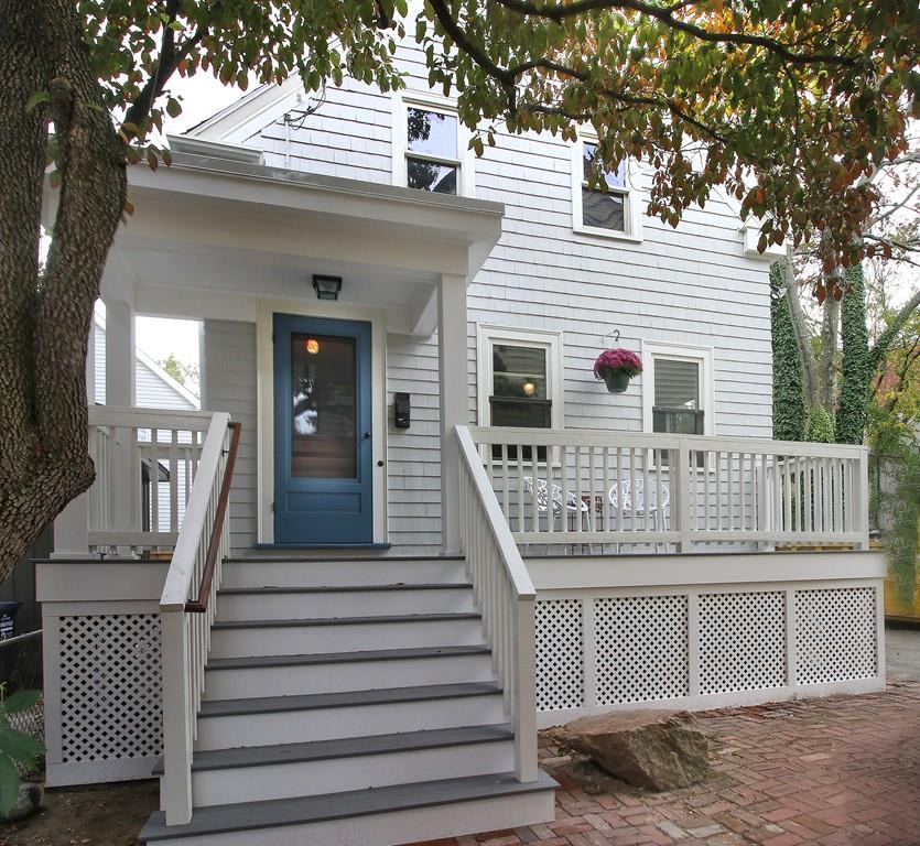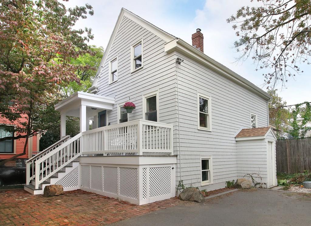 Home sweet home in the city. Built in 1854 and tucked away from the street, the house has retained much of its original charm and character. Pretty entrance hall, living room with a wonderful wall of built-ins, and a sunny country kitchen with expansive counter space on the first floor, three bedrooms up. The house is raised high which allows for good ceiling height and windows in the lower level. The finished room downstairs still has the original beehive oven built into the chimney. In condominium ownership with the two-unit building in front. 2017 improvements include interior painting, refinished floors, a new roof and a newly rebuilt front porch. One car parking, laundry in the basement. Super location close to Inman, Central and Kendall Squares. A rare opportunity!