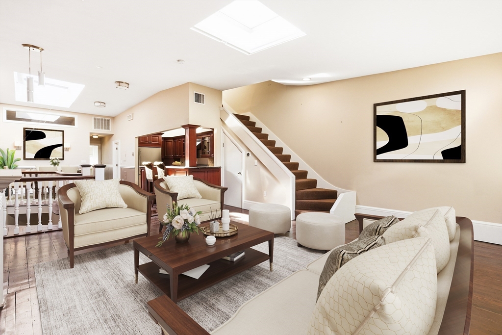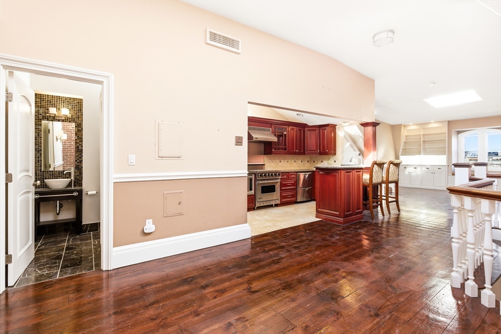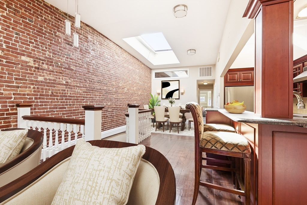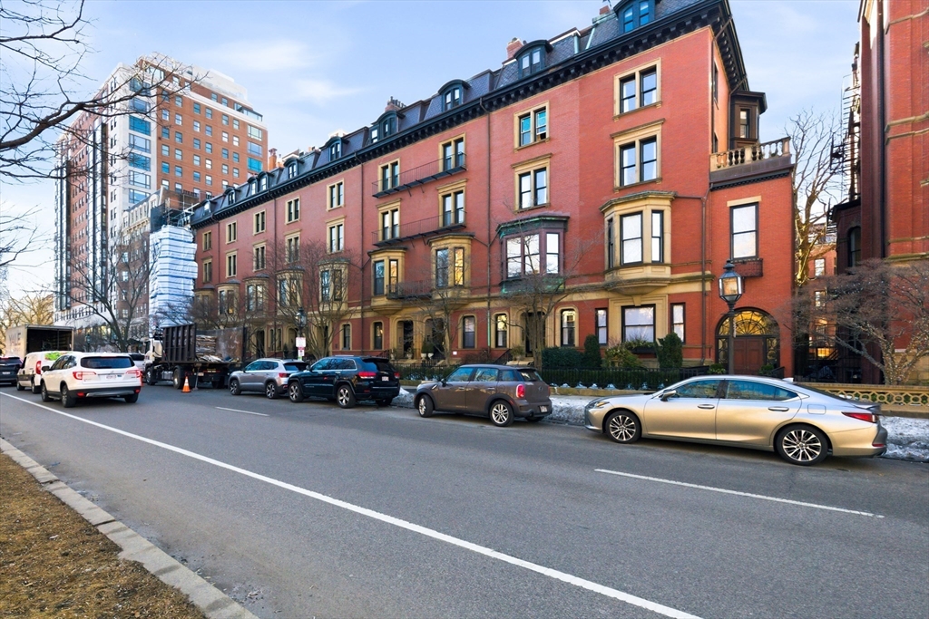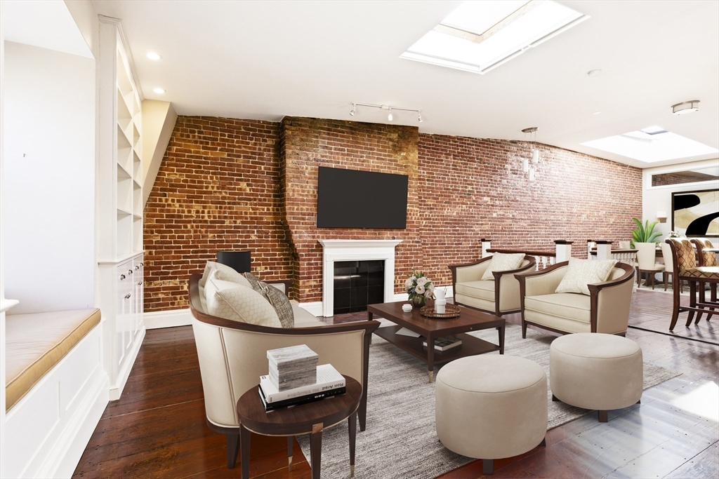 The world at your fingertips in the very 1st block of magnificent & historic Commonwealth Avenue. Next door to the celebrated, superbly landscaped Public Garden, close to T & innumerable shops. Unusually spacious 1-level, 1.5-bedroom penthouse in a stately 19th-century brick mansion with gorgeous reception hall. Residence is full of light & beauty. High ceilings, multiple skylights, lovely views. Handsome & open kitchen with stainless-steel appliances, a wine cooler, hardwood cabinetry, delightfully large bedroom with generous closets & a marble bath ensuite. Exposed-brick office is large enough for a guest bed. Half-bath for guests. Hardwood floors, central AC, cross-ventilation. An internal stairway leads to a spacious private roof deck with long vistas over the city. A rare full-size deeded parking space. 100% owner-occupied & beautifully maintained 4-unit residence. Close to the Theater District, restaurants, & several of Boston's most beloved architectural treasures.